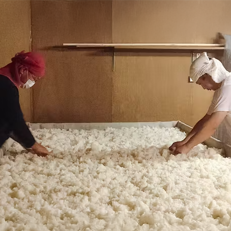 「長生米は、うちにしか種がない。正真正銘、久世酒造のお酒のために造られている酒米(さかまい)です。」にこやかな笑顔で久世さんは語る。長生米は、創業当時、江戸時代から長い年月をかけて、日本酒のために改良され続けてきたものだ。日本酒づくりに合うように作られており、コメの粒が大きく、雑味が少ない。そして、麹菌の繁殖やでんぷんの糖化を促進する役割を果たす心白(しんぱく)が大きい。吸水率が他の酒米に比べても非常に少なく、他の酒蔵にも驚かれる。扱いは難しいが、この酒米でつくった日本酒はやはり旨い。父、祖父、曾祖父と、ご先祖様が繋いでくれた久世酒造の宝でもある。