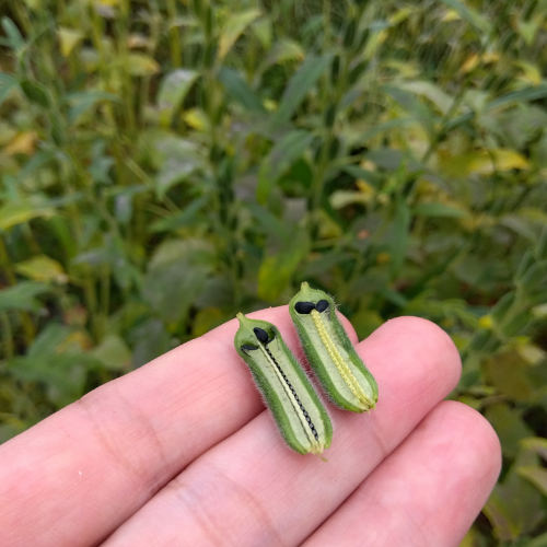 国内で流通するごまのうち、国産ごまはわずか約0.05%に過ぎないと言われています。日本で消費されるごまの年間需要量はおよそ17万トンとされ、その9割以上をアフリカや中南米などからの輸入に依存しています。国産ごまの生産量が少ない理由として、機械化が難しく手作業が多いこと、収穫期が短く天候の影響を受けやすいことなどが挙げられます。また、栽培には高い技術と手間が必要で、生産者も限られています。そのため国産ごまは流通量が極めて少なく、市場に出回ること自体が希少です。こうした背景から、国産ごまは安全性や風味の高さとあわせて、価値の高い農産物として注目されています。