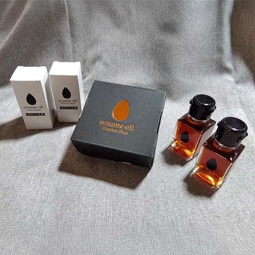出来上がったごま油は、国産の品質の高い希少な黒ごまを使い、一番搾りにこだわって精油した最高級品とも言える。そこで、「sesame oil ~Premium Black~(セサミオイル プレミアムブラック)」と名づけた。展示会などで様々な商品を熟知している商社のバイヤー達に試食してもらうと想像以上に驚かれた。中には悲鳴を上げて絶賛する人もいた。いままでのごま油の概念をくつがえす、まさにプレミアムな香り、コク、甘味、のどごし。多くの人が、驚きとともにこのごま油を気に入ってくれた。